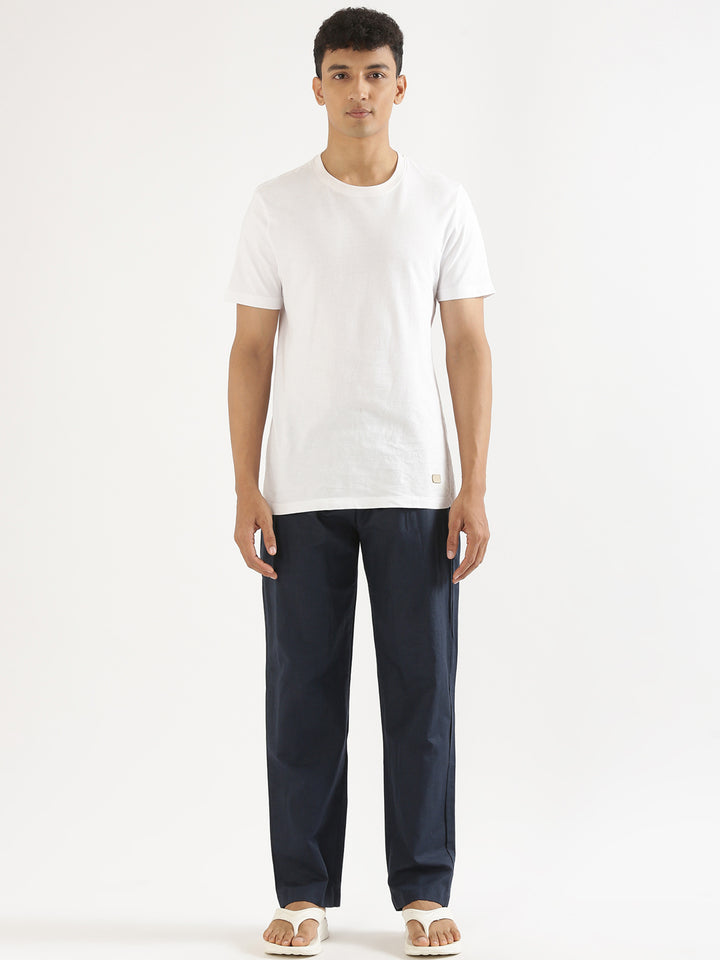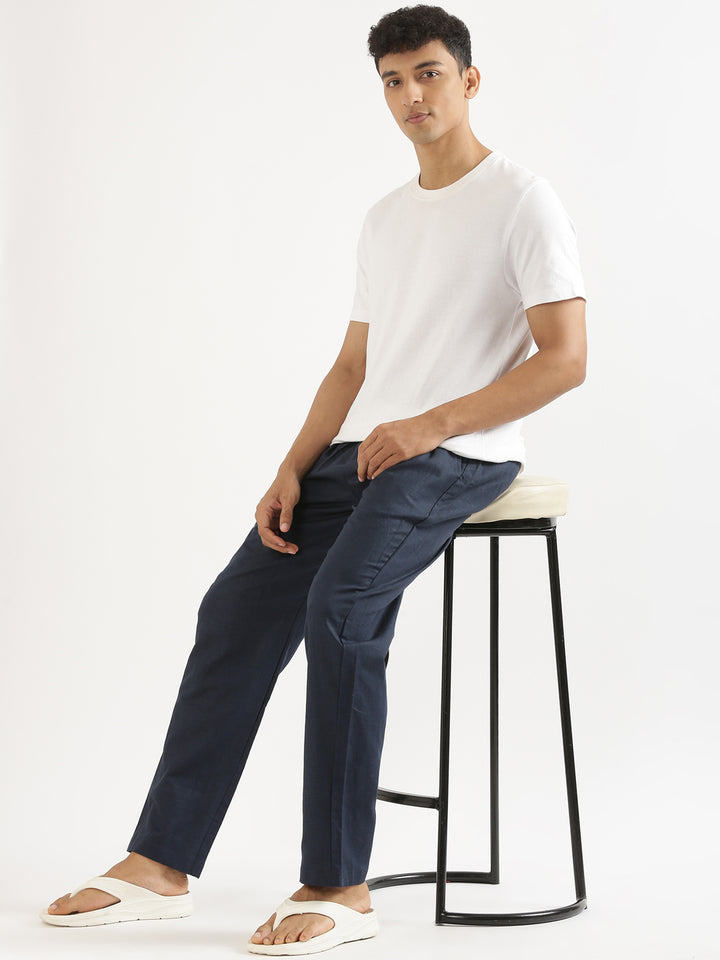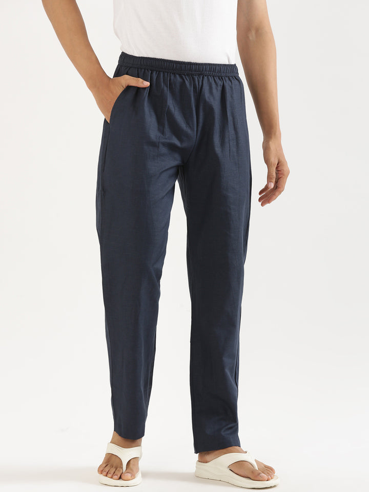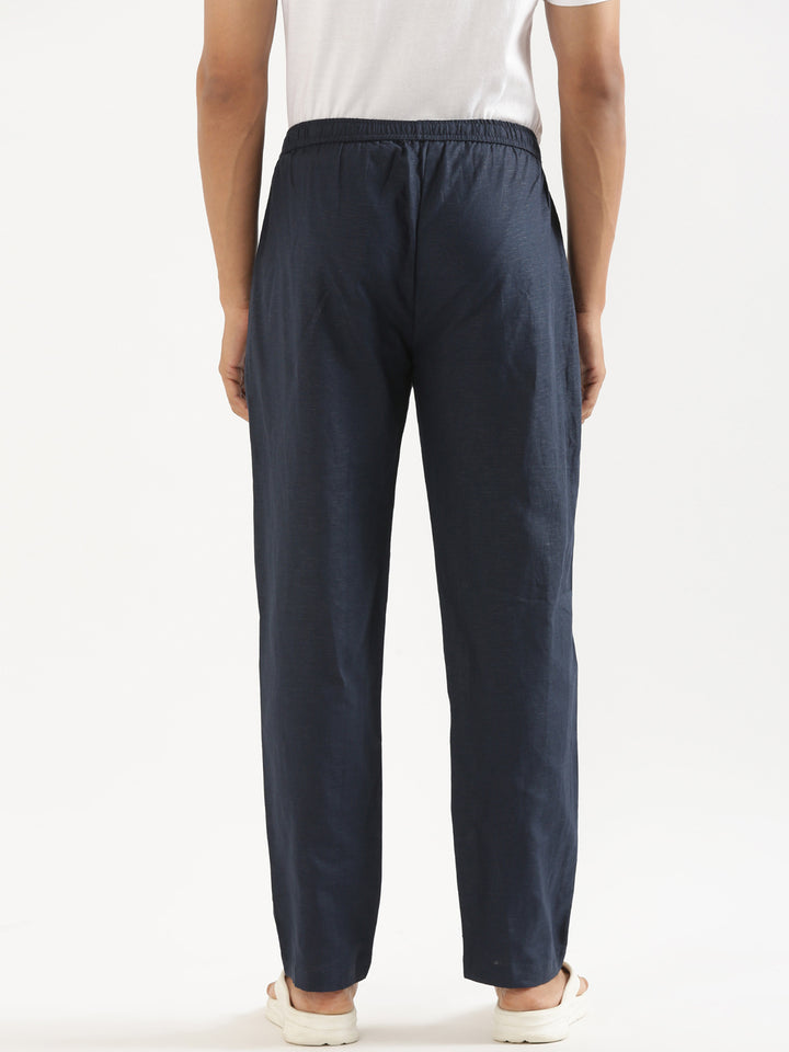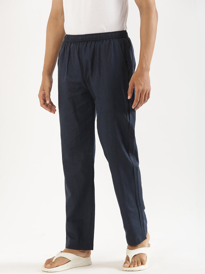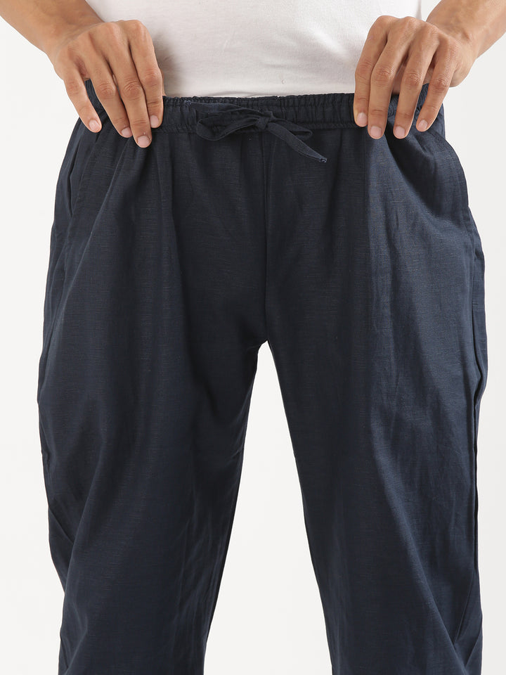 Men Hemp Regal Blue Broad Bottom Comfort Pant